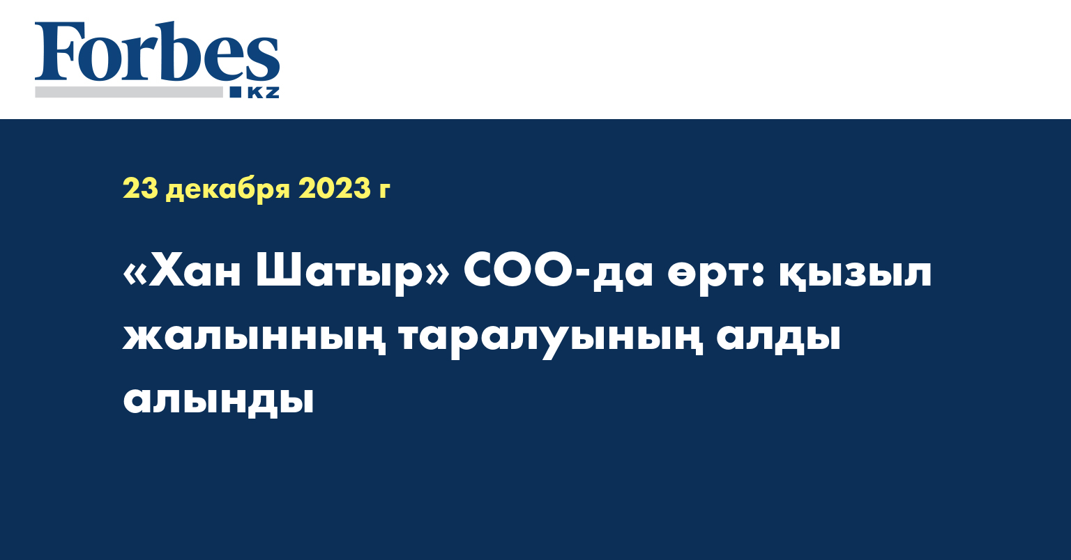 23 желтоқсан күні сағат 14:00-де Астана ТЖД Өрт сөндіру бөлімшелері «Хан шатыр» СОО-да өрт туралы келіп түскен хабарламаға шықты. Жергілікті орында 66 адам жұмыс істеп жатыр, деп хабарлайды елорда әкімдігінің ресми сайты қалалық ТЖД баспасөз қызметіне сілтеме жасап.