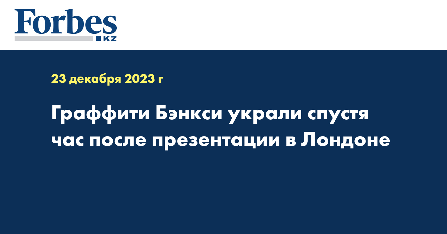 Двое неизвестных мужчин украли работу стрит-арт художника Бэнкси через час после того, как он подтвердил свое авторство, передает Kazinform.