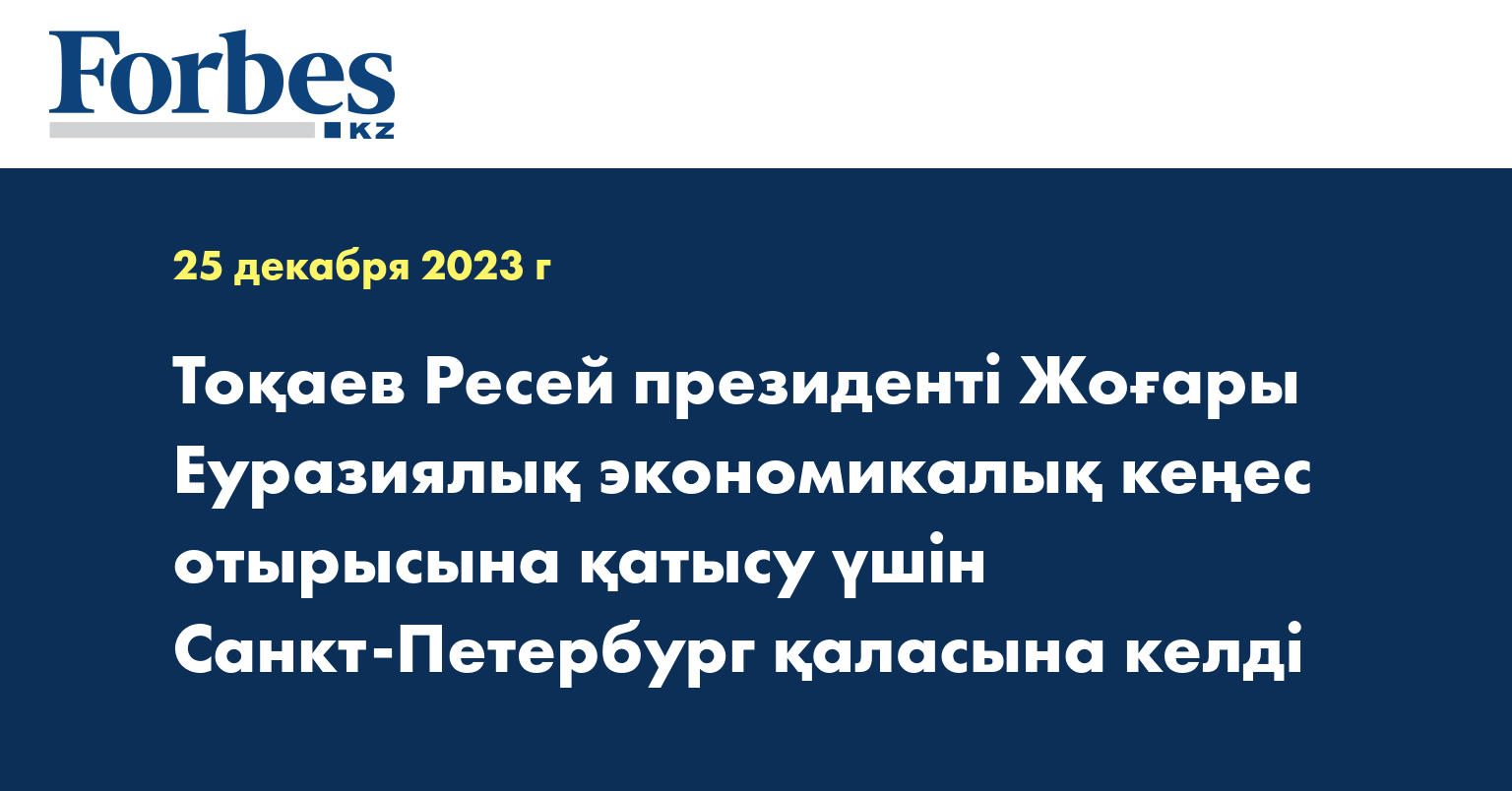 Мемлекет басшысы Қасым-Жомарт Тоқаев Ресей президенті Владимир Путиннің шақыруымен Жоғары Еуразиялық экономикалық кеңес отырысына қатысу үшін Санкт-Петербург қаласына келді