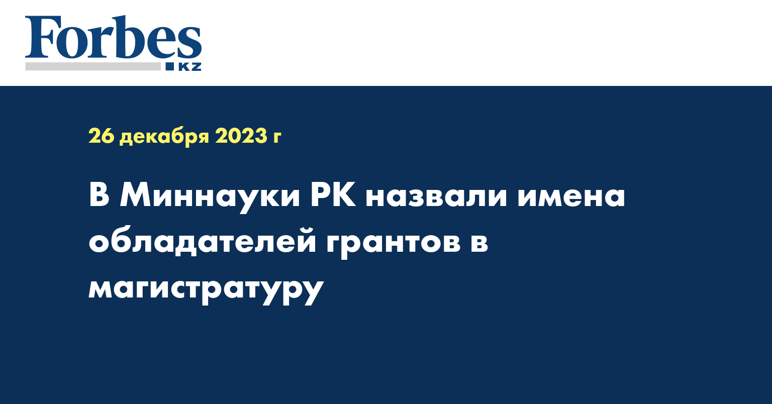 Образовательные гранты для обучения в магистратуре были присуждены на конкурсной основе по результатам комплексного тестирования (КТ).