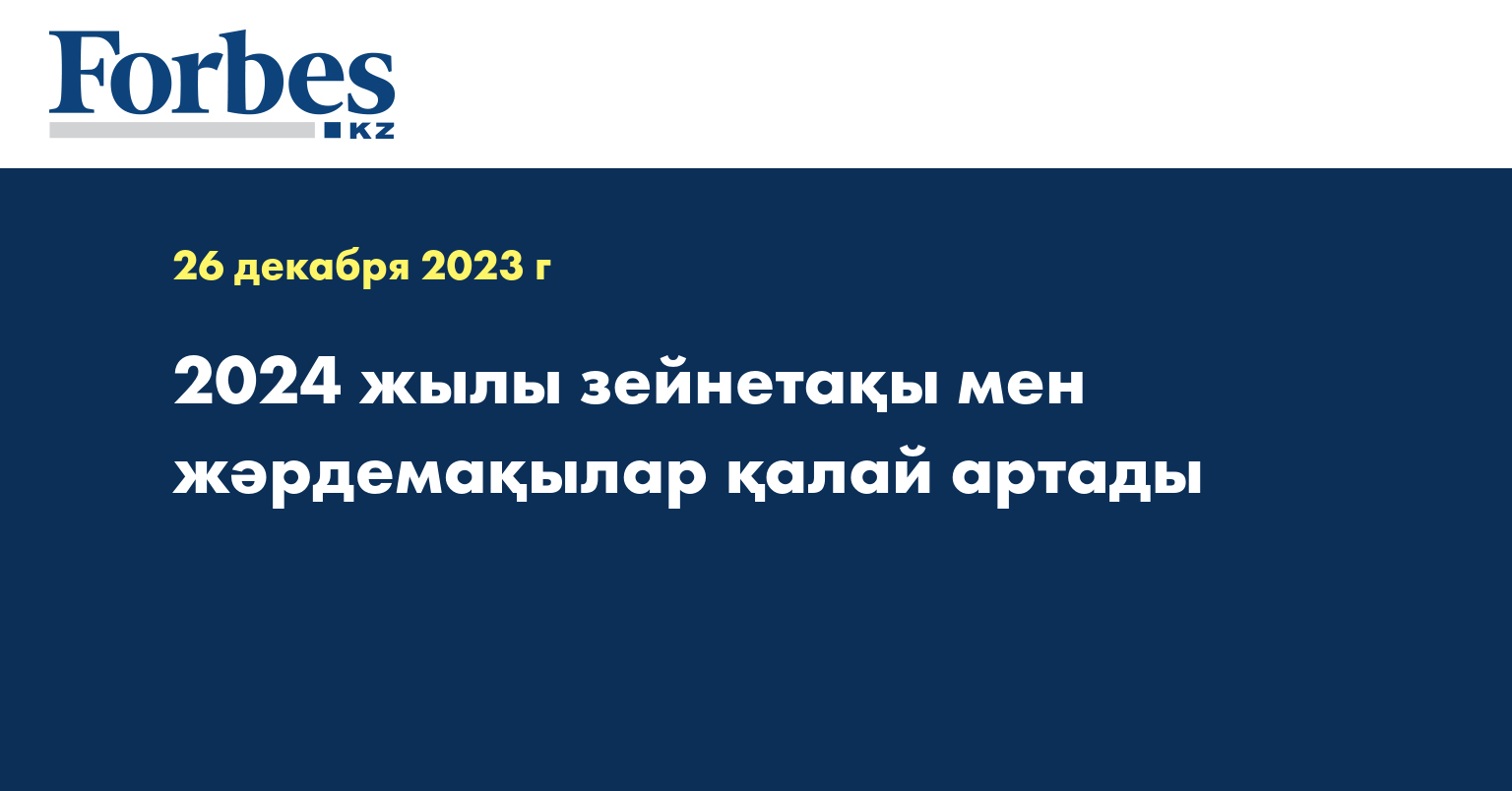 2024–2026 жылдарға арналған республикалық бюджет туралы заңда 2024 жылғы 1 қаңтардан бастап мемлекеттік жәрдемақылар мен базалық зейнетақы төлемдерінің барлық түрін ҚР Ұлттық Банкі айқындайтын инфляцияның болжамды деңгейіне сәйкес 7%-ға, ынтымақты зейнетақыны – 9%-ға, яғни инфляция деңгейінен 2%-ға ілгерілеп арттыру көзделген.