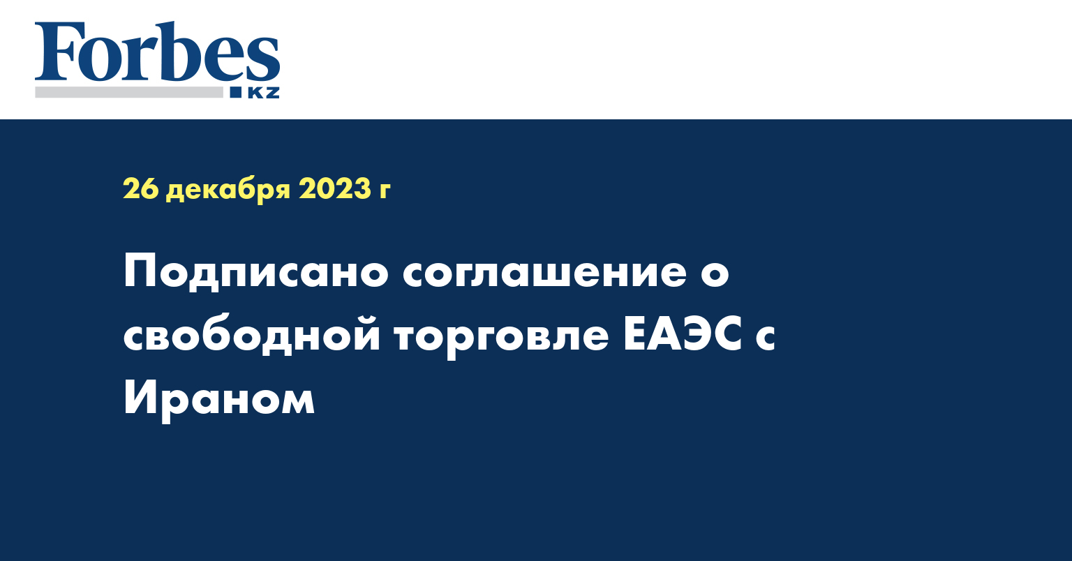 25 декабря 2023 года на полях Высшего Евразийского экономического совета в г. Санкт-Петербурге подписано соглашение о свободной торговле между Евразийским экономическим союзом и его государствами-членами с одной стороны и Исламской Республикой Иран с другой стороны, передает primeminister.kz.