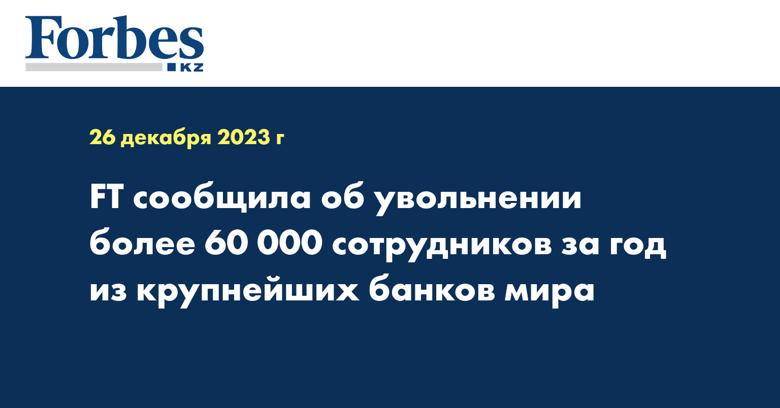 Двадцать крупнейших мировых банков сократили 61 905 рабочих мест с начала года, что сделало 2023-й одним из самых тяжелых годов со времен финансового кризиса, пишет Financial Times со ссылкой на собственные расчеты на основании отчетностей банков, при этом газета не учитывала сокращения в мелких банках и незначительные увольнения. По информации газеты, таким образом инвестиционные банки хотят сохранить свою прибыль, передает Forbes.ru.