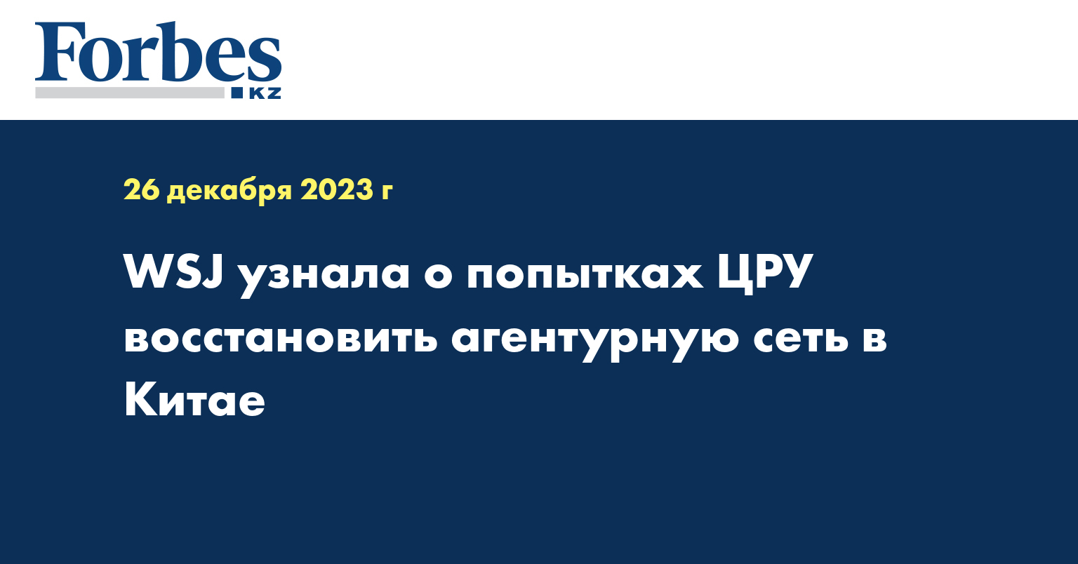 ЦРУ всё еще пытается восстановить агентурную сеть в Китае, после того как с 2010 по 2012 год Пекин арестовал около 20 работающих на США шпионов внутри страны, часть из которых были казнены, рассказали The Wall Street Journal (WSJ) нынешние и бывшие американские чиновники. Без агентов, отметили они, Вашингтон знает о планах лидера КНР Си Цзиньпина в основном благодаря умозаключениям и анализу его частых публичных заявлений. «Мы вообще не имеем никакого реального представления о планах и намерениях руководства Китая», – отметил бывший высокопоставленный сотрудник американской разведки, передает Forbes.ru.