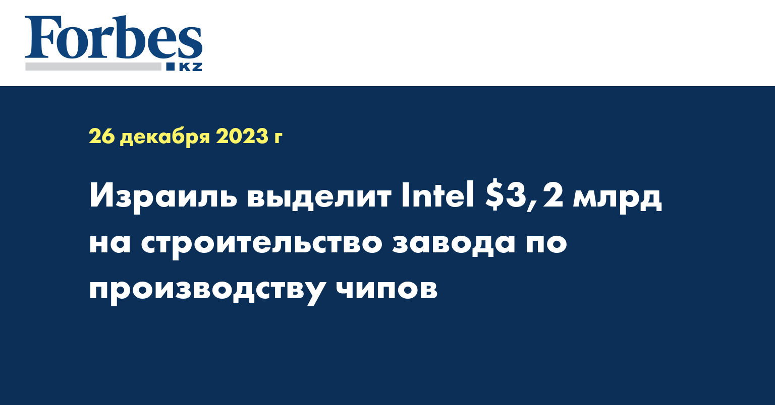 Правительство Израиля выразило готовность выделить грант в размере $3,2 млрд на строительство нового завода Intel по производству чипов в Кирьят-Гате, сообщает Reuters. Сама компания планирует потратить на строительство завода $25, государственные средства составят 12,8% от этой суммы, уточнило агентство. Кроме того, Intel обязался закупить у израильских поставщиков товары и услуги на $16,6 млрд в течение следующих 10 лет. Ожидается, что на новом заводе откроется несколько тысяч рабочих мест, передает Forbes.ru.