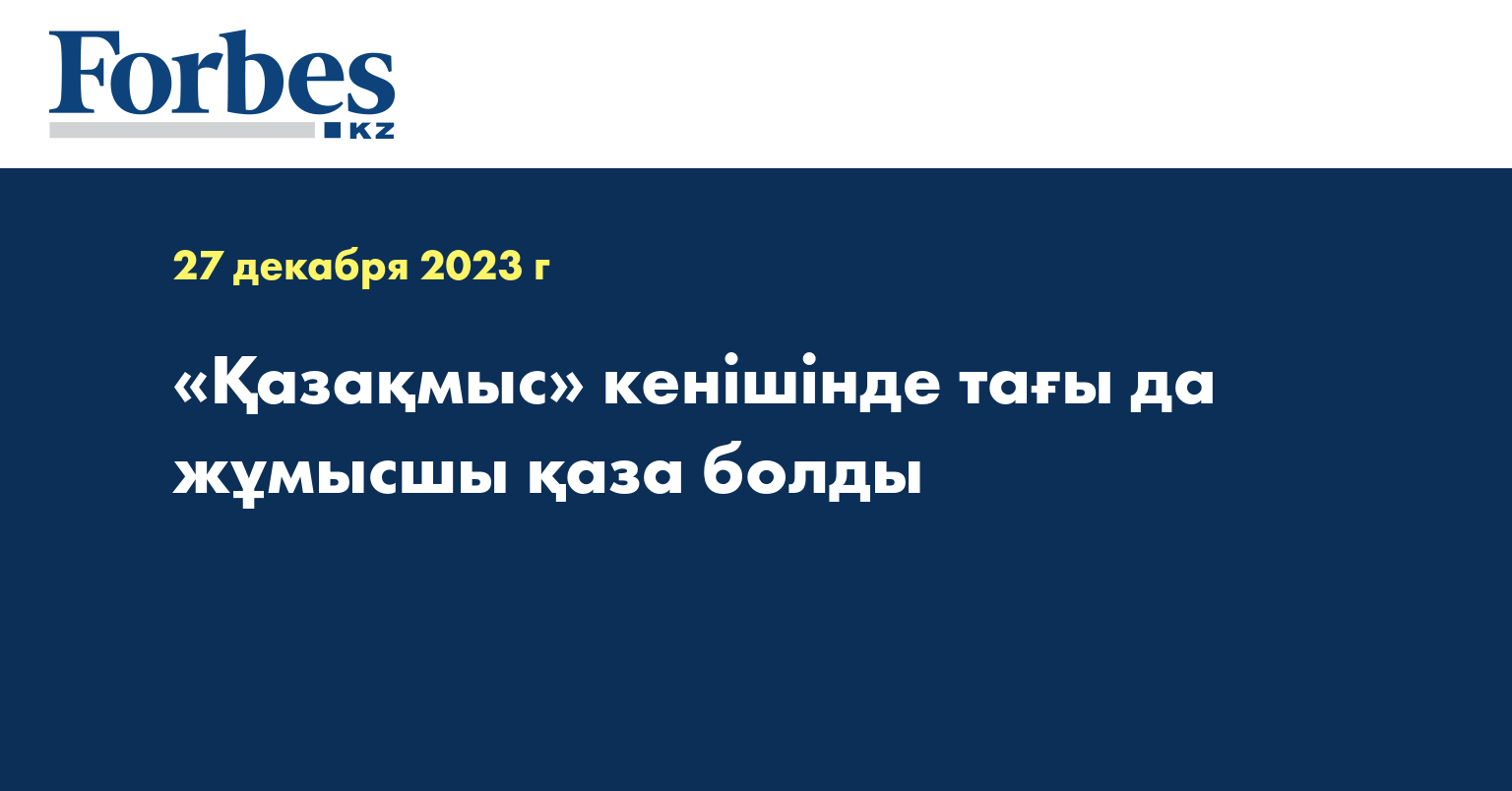 ««Қазақмыс» компаниялар тобы Ұлытау облысында орналасқан «Жыланды» кенішінде 26 желтоқсан күні қайғылы оқиға болғанын қайғыра хабарлайды.