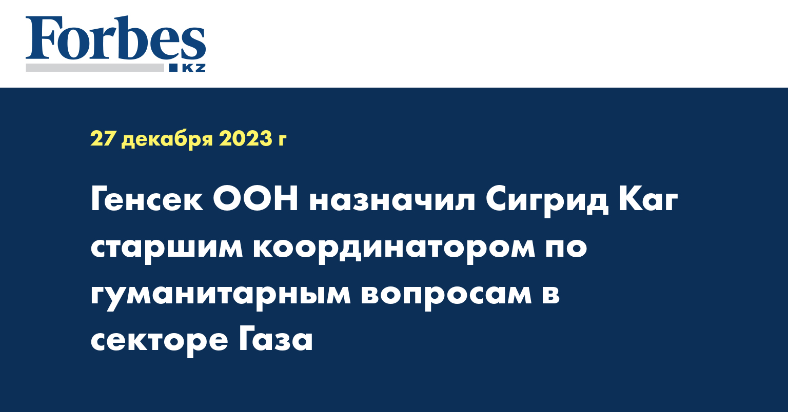 Генеральный секретарь ООН Антониу Гутерриш во вторник назначил Сигрид Каг из Нидерландов старшим координатором по гуманитарным вопросам и восстановлению в секторе Газа, передает Синьхуа.