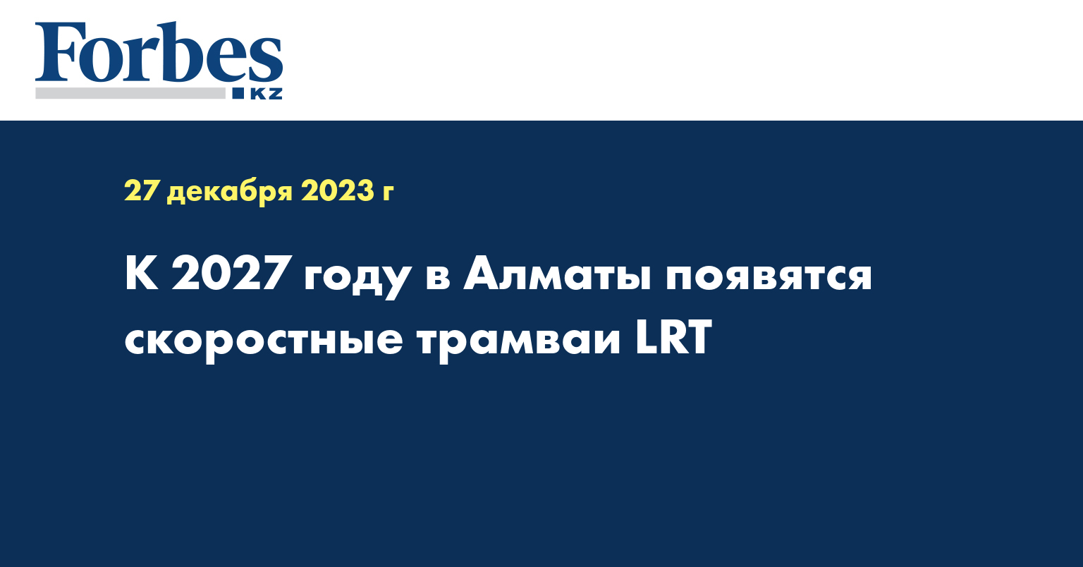 Первый участок новой системы скоростного трамвая LRT (легкорельсового транспорта) планируется построить к 2027 году. Он пройдет по улицам Момышулы, Толе би и проспекту Райымбека до восточной границы города. Об этом сообщил Александр Ованесов - партнер компании Future of Mobility, принимавшей участие совместно с НИИ «Алматыгенплан» в разработке мастер-плана транспортного каркаса.