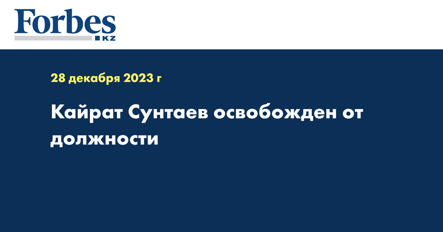 — Распоряжением Главы государства Сунтаев Кайрат Имятович освобожден от должности заместителя министра внутренних дел Республики Казахстан, — говорится в сообщении.