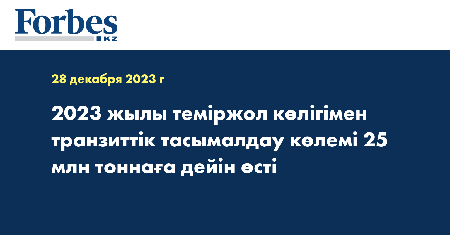 2023 жылдың 11 айының қорытындысы бойынша транзиттік тасымалдау көлемі 19%-ға ұлғайып, 24,8 млн тоннаны құрады. Контейнерлік транзиттің оң динамикасы сақталуда, бұл 1 млн 180 мың ЖФЭ құрайды.