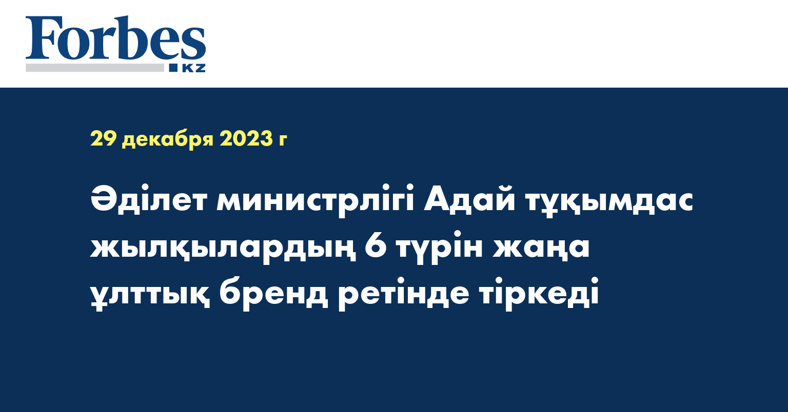 Бүгін ҚР Әділет министрлігі Адай тұқымдас жылқылардың 6 түрін жаңа ұлттық бренд ретінде тіркеді. Бұл туралы Әділет министрлігінің ресми өкілі Талғат Уәли мәлімдеді.
