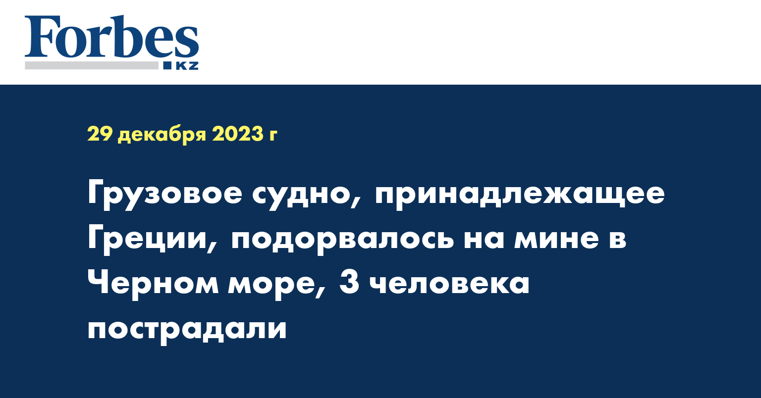 Грузовое судно, принадлежащее Греции, подорвалось на мине в Черном море, три члена экипажа получили легкие травмы. Об этом в четверг сообщила греческая вещательная корпорация ERT со ссылкой на украинские источники, передает Синьхуа.