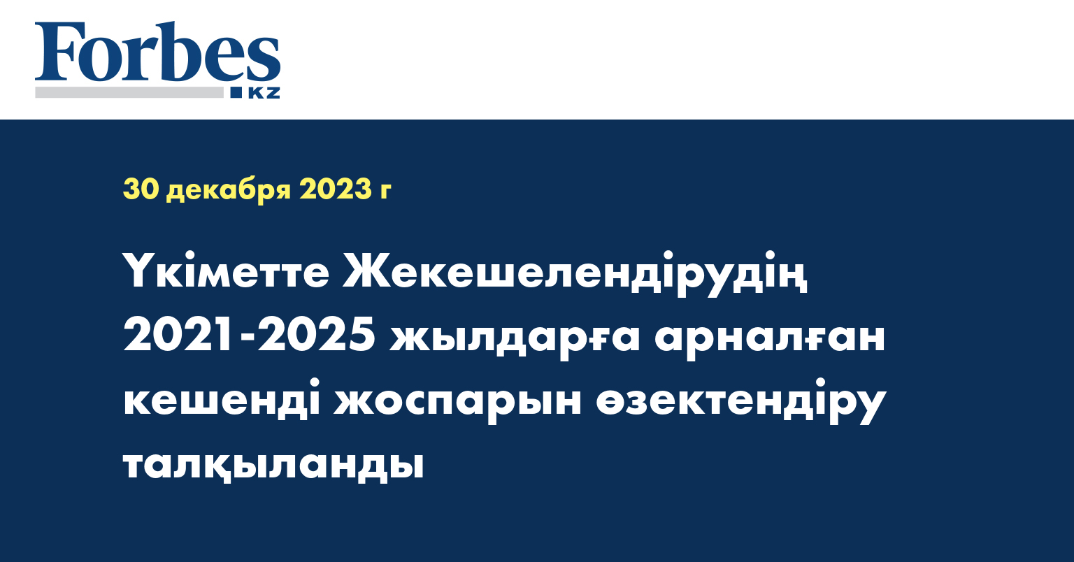 Қатысушылар Жекешелендірудің 2021-2025 жылдарға арналған кешенді жоспарын өзектендіру барысын талқылады. Атап айтқанда, одан 20-дан астам коммуналдық меншік ұйымын алып тастау ұсынылып отыр. Олардың ішінде ТКШ нысандары, кейбір медициналық және микроқаржы ұйымдары бар. Соңғыларын мемлекет жеңілдікпен несие беру және кәсіпкерлерді оқыту бойынша қызметтер көрсету үшін пайдаланатын болады.