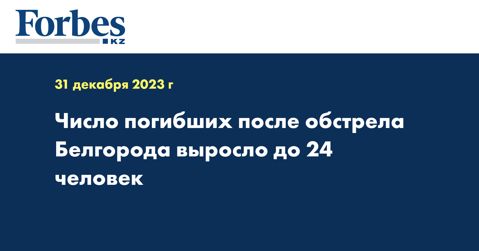 В результате массированного обстрела Белгороде накануне, 30 декабря, погибли 24 человека, сообщил губернатор региона Вячеслав Гладков в своем Telegram-канале, передает Forbes.ru.
