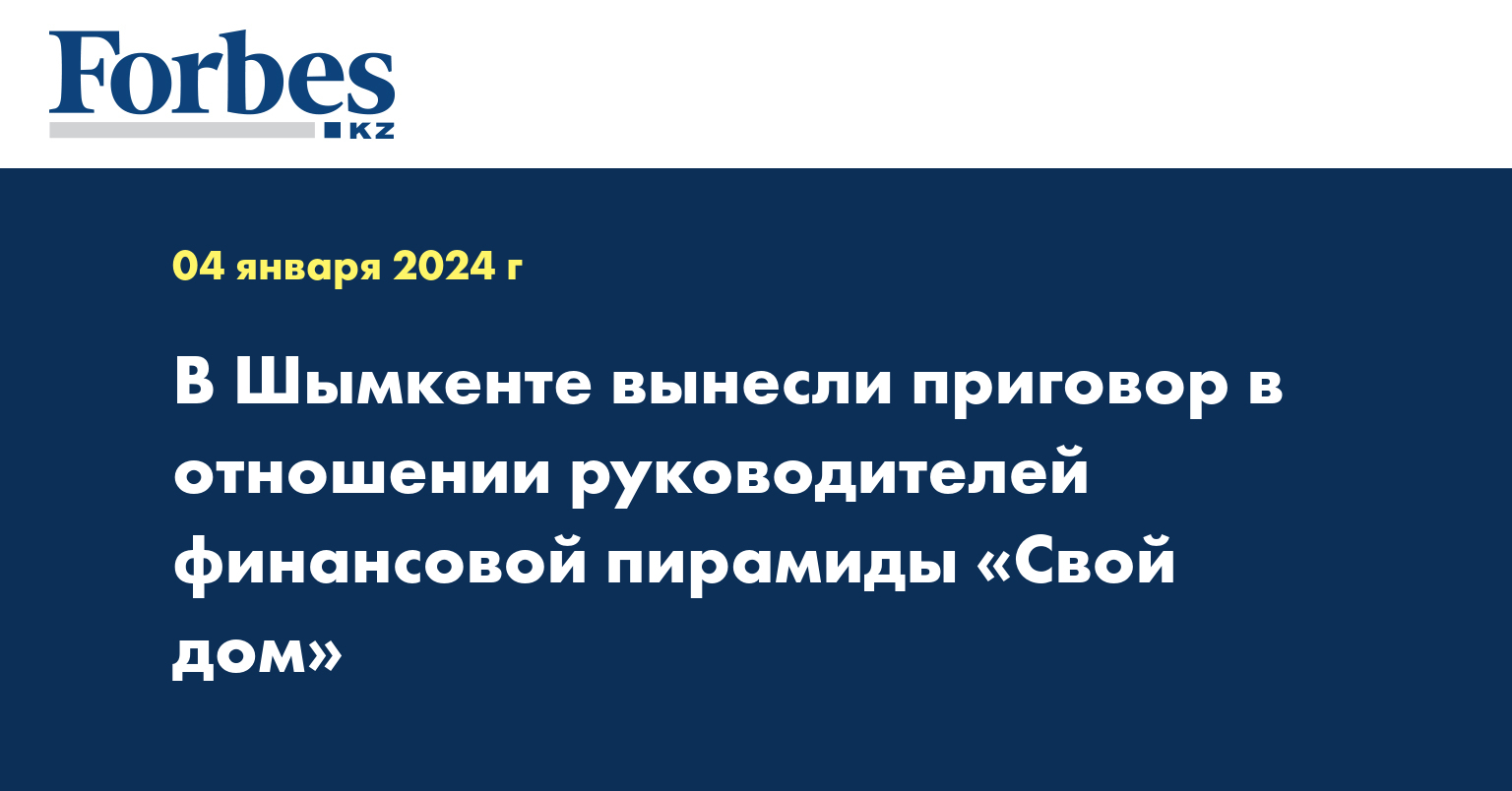 Досудебное расследование по факту создания и руководства финансовой пирамидой «Свой дом» окончено Департаментом АФМ по г.Шымкент.