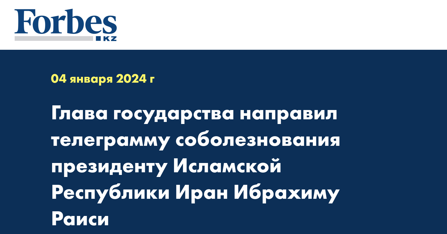 Касым-Жомарт Токаев выразил соболезнования Ибрахиму Раиси в связи с многочисленными человеческими жертвами в результате теракта в иранском городе Керман.