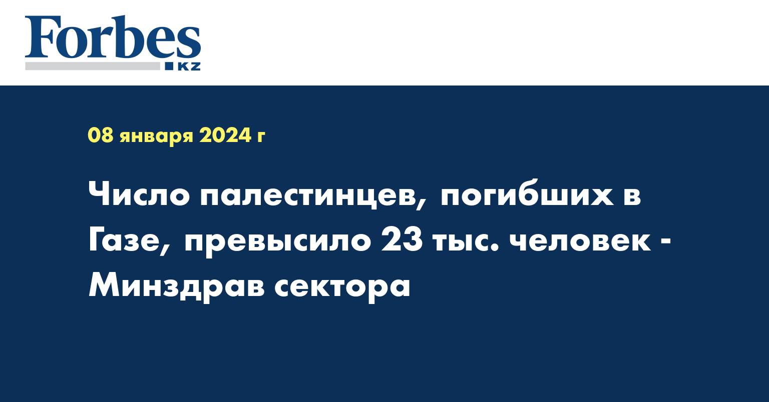 Число палестинцев, погибших в результате продолжающихся израильских ударов по сектору Газа, превысило 23 тыс. человек. Об этом в понедельник сообщило базирующееся в Газе Министерство здравоохранения, передает Синьхуа.