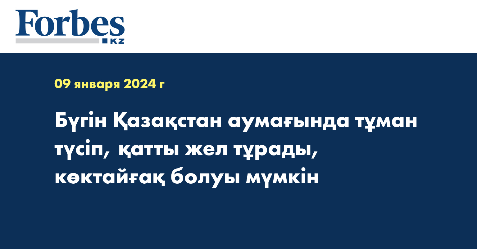 Қазгидромет ел аумағында 9 қаңтарда болатын қауіпті метеорологиялық құбылыстарға болжам жасады.