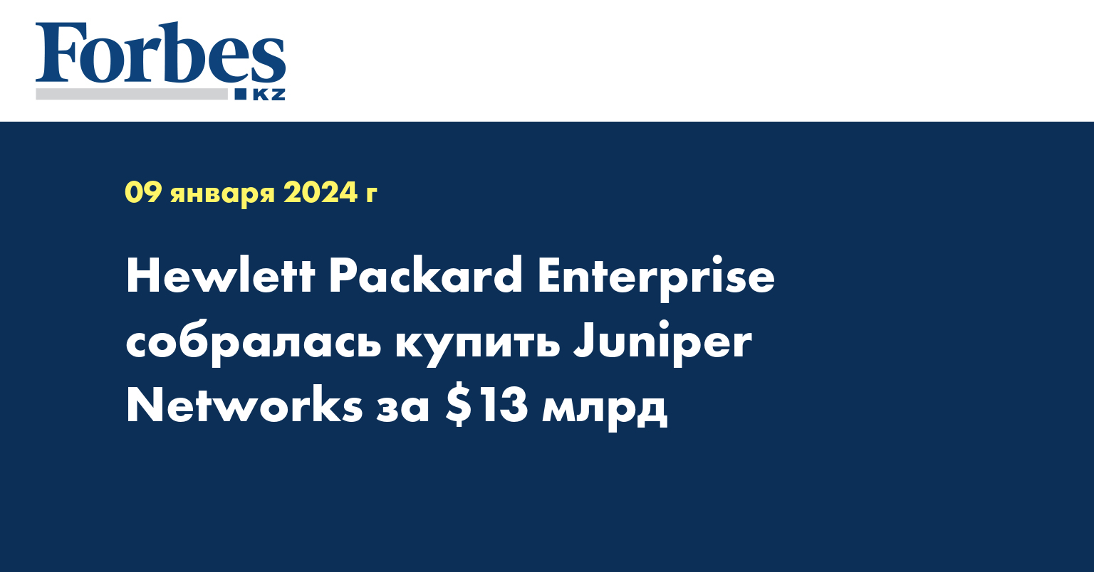 Hewlett Packard Enterprise (HPE) ведет переговоры о покупке производителя телекоммуникационного оборудования Juniper Networks за $13 млрд, сообщают Reuters и The Wall Street Journal со ссылкой на источники. По их словам, о сделке могут объявить уже на этой неделе, передает Lenta.ru.