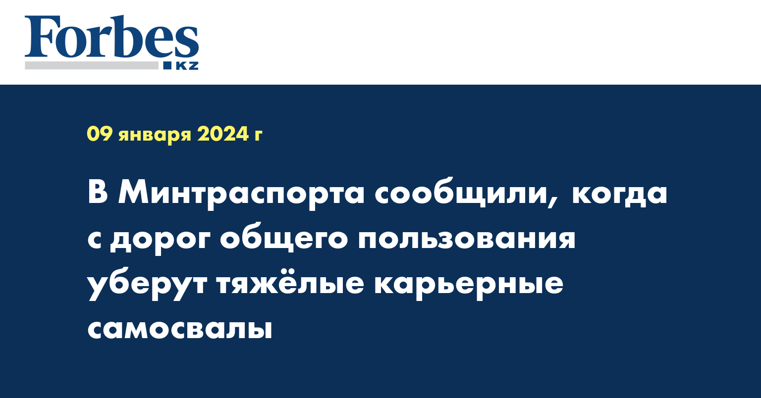 «Везде в мире проезд карьерных грузовиков по автодорогам общего пользования запрещен. Казахстан, вероятно, единственная страна, где такое допускается. Мы хотели ввести запрет с 2023 года, но участники рынка попросили время, чтобы бизнес подготовился. Поэтому тяжелые карьерные грузовики уберем с казахстанских дорог в конце 2025 – начале 2026 года. Сейчас транспортные ассоциации должны говорить об этом предпринимателям», подчеркнул Марат Карабаев.