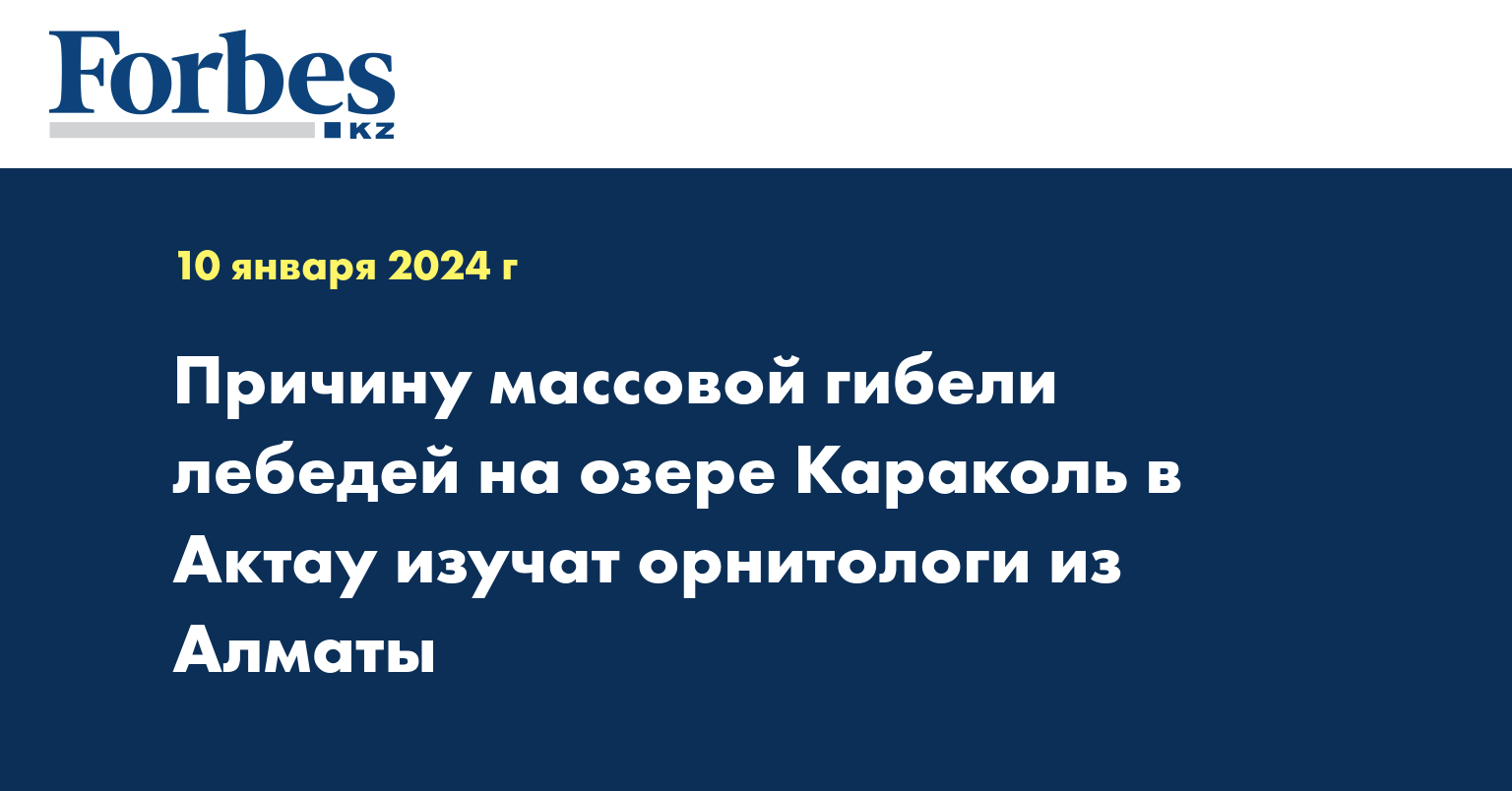 «21 декабря 2023 года поступило первое уведомление о гибели лебедей на озере Караколь. Мы связались со специалистами из Национального референтного центра по ветеринарии, подведомственного Комитету ветеринарного контроля и надзора Министерства сельского хозяйства Республики Казахстан, и с экспертами из Института микробиологии и вирусологии. Они направили специалистов для взятия проб тушек лебедей с целью проведения обследования. На данный момент, по состоянию на 6 января 2024 года, мы зафиксировали гибель 601 особи. Более 90 процентов погибших лебедей - молодняк. Ожидаем орнитологов Ассоциации сохранения биоразнообразия Казахстана для проведения дополнительных исследований», - проинформировал Габбас Досатов, руководитель Мангистауской областной территориальной инспекции лесного хозяйства и животного мира.