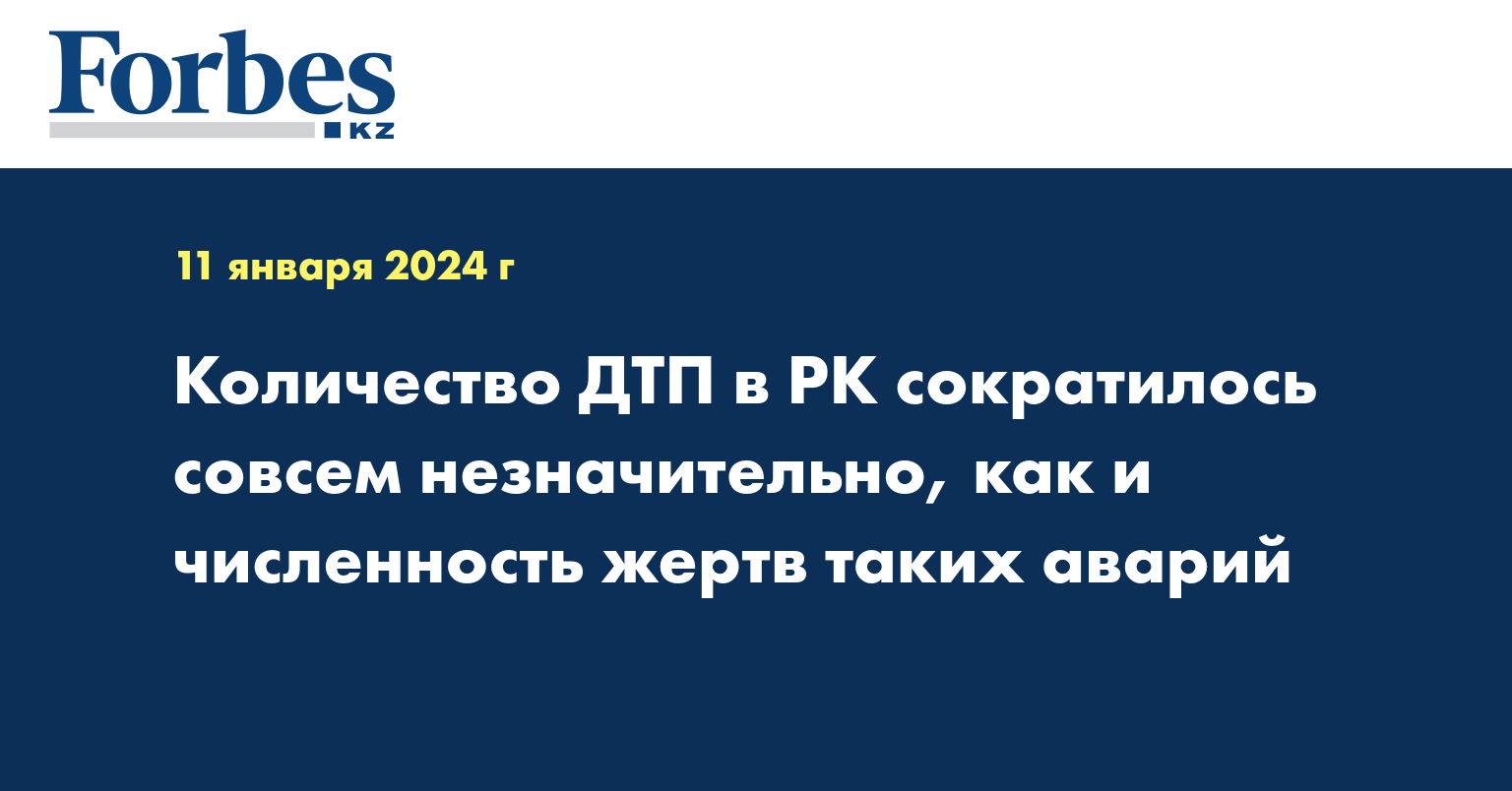 За январь–ноябрь 2023 года в стране зарегистрировали 13,2 тыс. дорожно-транспортных происшествий — на 1,5% меньше, чем годом ранее, передает ranking.kz.