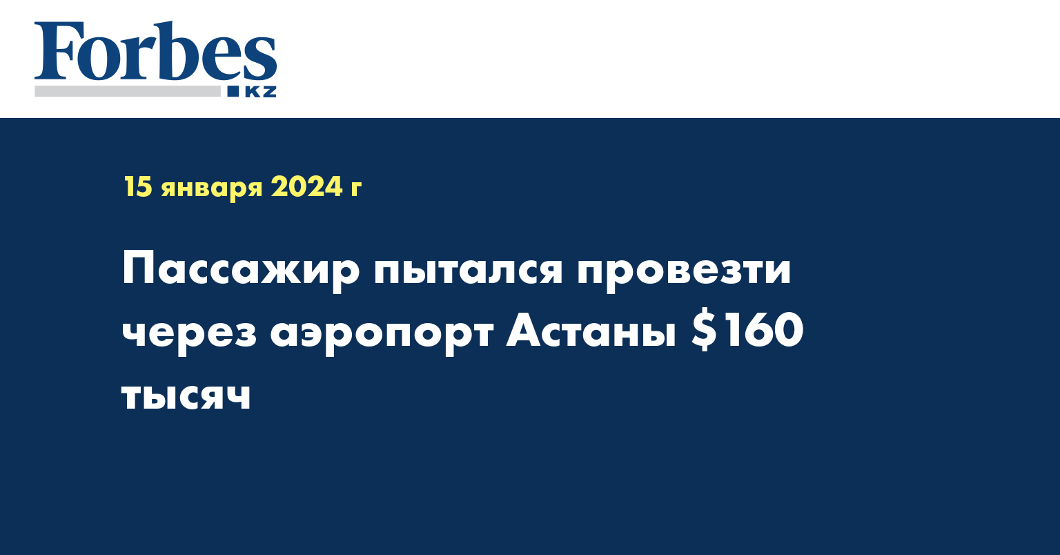 – Сотрудниками подразделения досмотра службы авиационной безопасности международного аэропорта Астаны в ходе производства предполетного досмотра в багаже у пассажира были выявлены денежные средства в количестве около 160 тысяч долларов США. После чего данный пассажир вместе с денежными средствами был передан сотрудникам соответствующих органов, – сообщили в пресс-службе.
