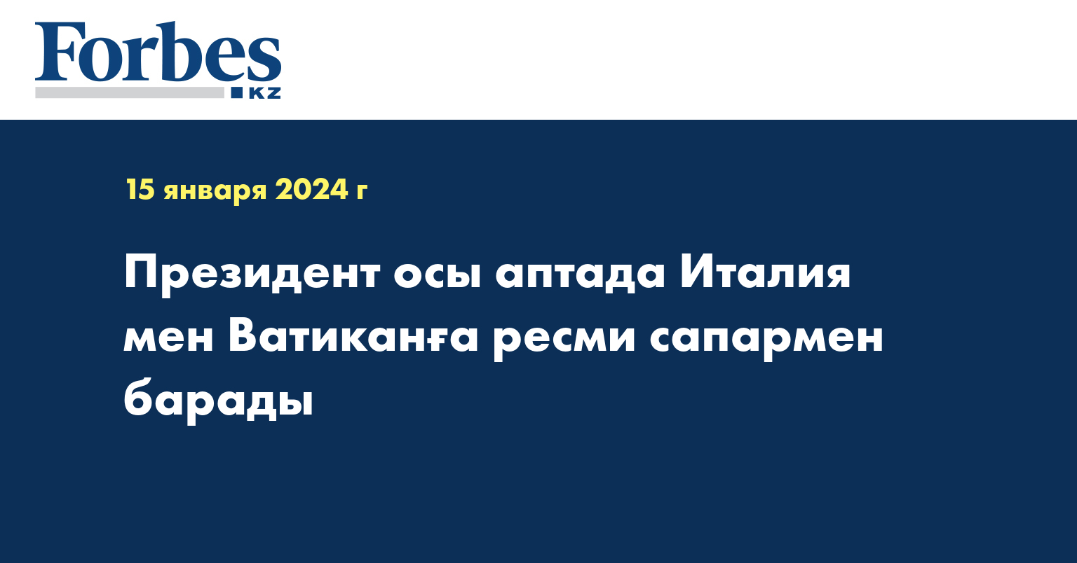 Мемлекет басшысы 18-19 қаңтар күндері Италия және Ватикан мемлекеттеріне ресми сапармен барады.