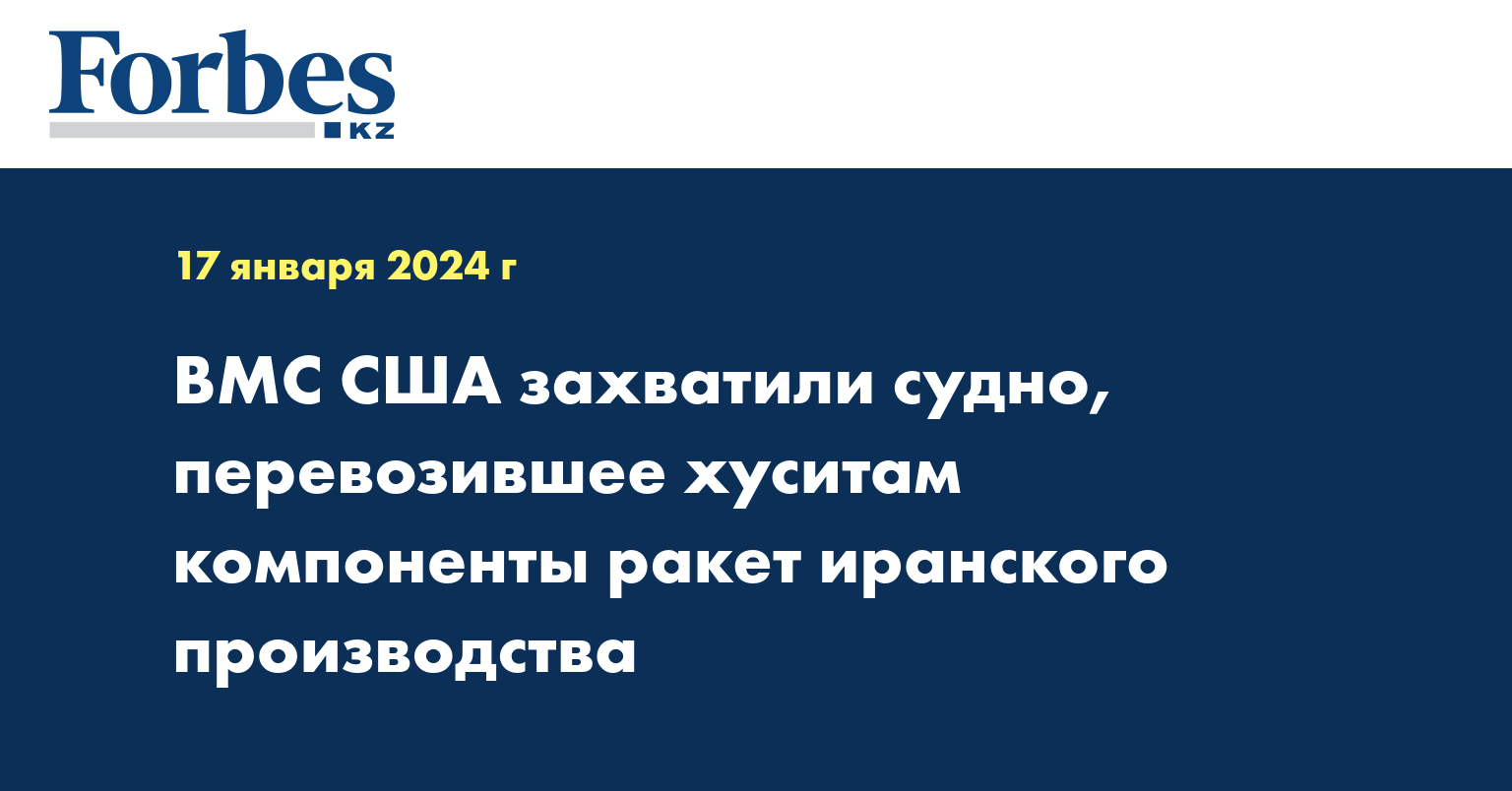 Военное руководство США заявило во вторник, что американские военные обнаружили на захваченном ими судне в Аравийском море компоненты ракет иранского производства, транспортируемые в распоряжение хуситов (хути). Речь идет о первой подобной операции с момента начала нападений хуситов на коммерческие суда, передает «Голос Америки».