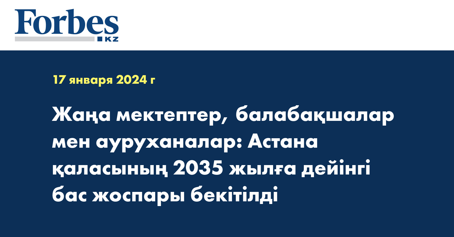 Мемлекет басшысы Қасым-Жомарт Тоқаевтың тапсырмасы бойынша әзірленген Астананың негізгі қала құрылысы құжаты қоғамда кеңінен талқылаудан өтті. Онда халық санының қарқынды өсуін ескере отырып, қаланы қарқынды дамыту шаралары қарастырылған. Бүгінгі таңда елорда тұрғындарының саны шамамен 1,2 млн адамды құрайды, 2035 жылға қарай аталған көрсеткіш 2,3 млн адамға жетеді деп күтілуде.