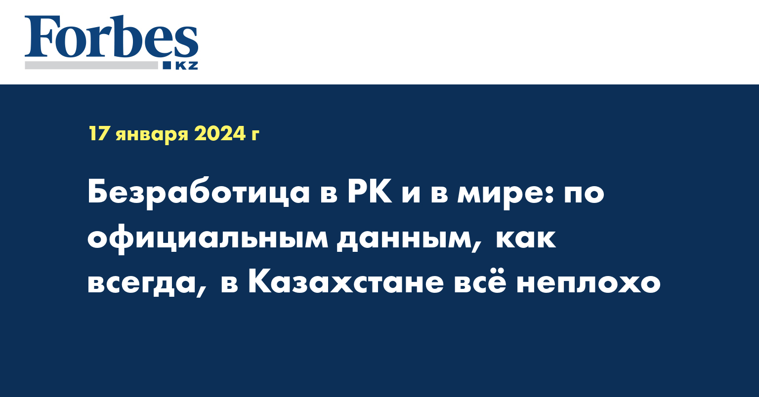В мире, по данным Global Economy, на 2022 год уровень безработицы и вправду был намного выше, чем в РК. При казахстанском показателе на тот период в 5%, например, в Турции он составлял 10%, в Бразилии — 9,5%, во Франции — 7,5%, в Швеции — 7,4%, в Финляндии — 6,8%, в Эстонии — 5,6%. Насколько реалистична такая ситуация — очевидно.
