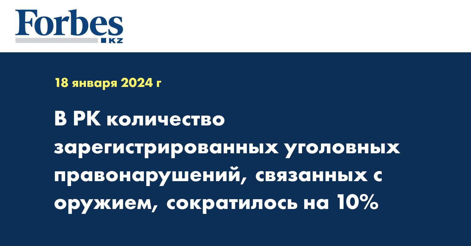 За январь – декабрь 2023 года в Едином реестре досудебных расследований (ЕРДР) было зарегистрировано 2,1 тыс. правонарушений, связанных с оружием — на 10,3% меньше, чем годом ранее, передает ranking.kz.