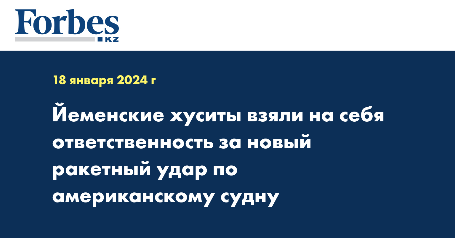 Йеменские хуситы в среду взяли на себя ответственность за ракетный удар по американскому судну в Аденском заливе, передает Синьхуа.