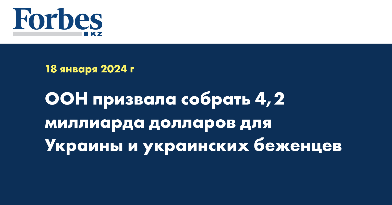 ООН призвала собрать 4,2 миллиарда долларов на поддержку пострадавшего от войны населения в Украине, а также украинских беженцев и принимающих общин в регионе, передает «Голос Америки».