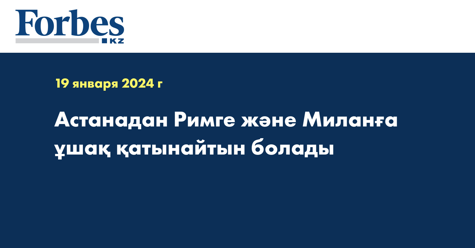 Астана – Рим және Астана – Милан әуе рейстерін ашу жоспарланып отыр. Бұл туралы Мемлекет басшысы Қасым-Жомарт Тоқаев NEOS әуе компаниясының президенті Лупо Раттацциді қабылдау кезінде айтты.