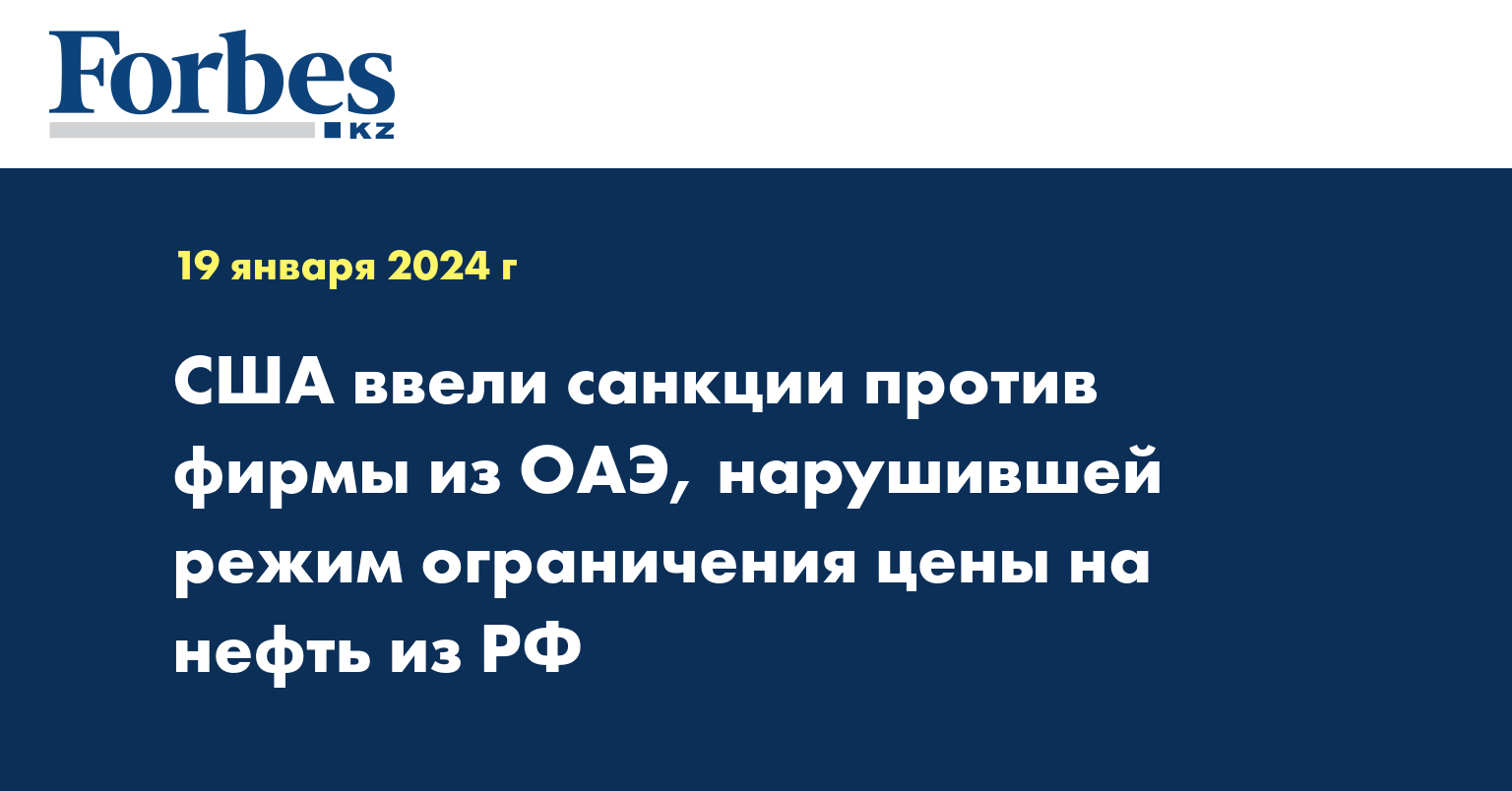 В четверг Министерство финансов сообщило, что ввело санкции против судоходной компании из Объединенных Арабских Эмиратов (ОАЭ) за нарушение режима ограничения цены на экспорт российской нефти, что стало первым подобным правоприменительным актом в этом году, передает "Голос Америки".