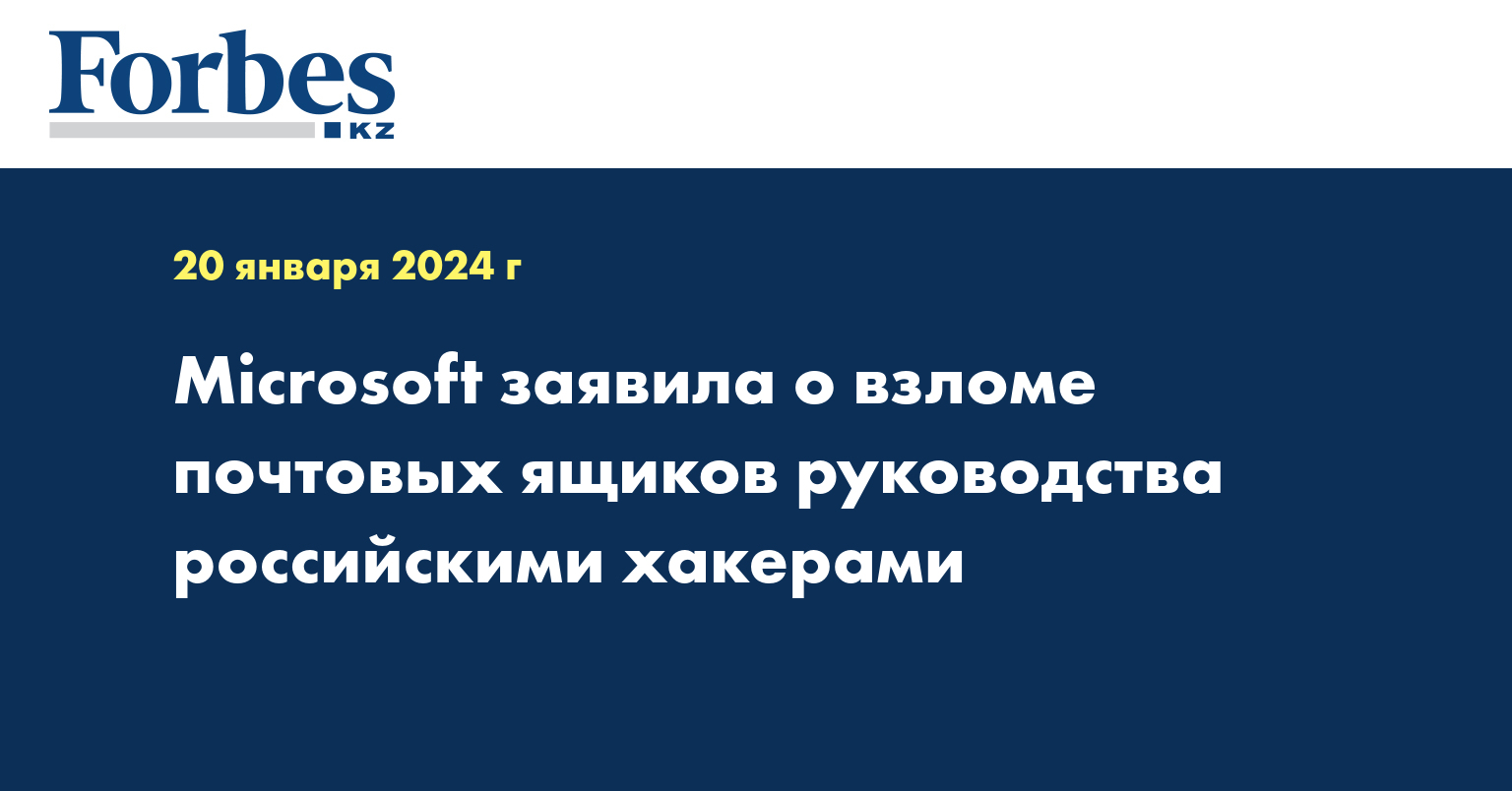 Корпоративные системы Microsoft подверглись атаке со стороны хакерской группировки Midnight Blizzard (также известна как Nobelium), которую компания обвиняет в связях с Россией. Об этом сообщается в блоге Microsoft, пишет Forbes.ru.