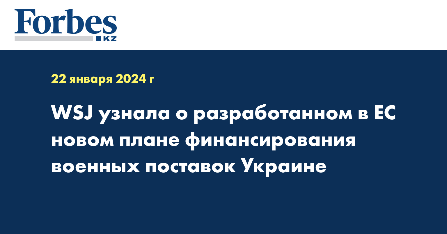 В предложении, в частности, говорится, что способность Украины «решительно добиваться прогресса» зависит от выбора государств-членов ЕС. Инициатива предусматривает возврат государствам-членам ЕС более €20 млрд в качестве компенсации за военную помощь, которую они окажут Украине в течение четырех лет. Фонд поглотит около €6,5 млрд из активов EPF ( European Peace Facility — Европейский фонд мира и будет выделять до €5 млрд компенсаций ежегодно с 2024 по 2027 год. Официальные обсуждения инициативы начнутся в ближайшие дни, пишет WSJ со ссылкой на неназванных чиновников ЕС. Предложение, вероятно, будет обсуждаться лидерами ЕС на саммите 1 февраля, но любое окончательное решение, скорее всего займет недели, отмечает газета.