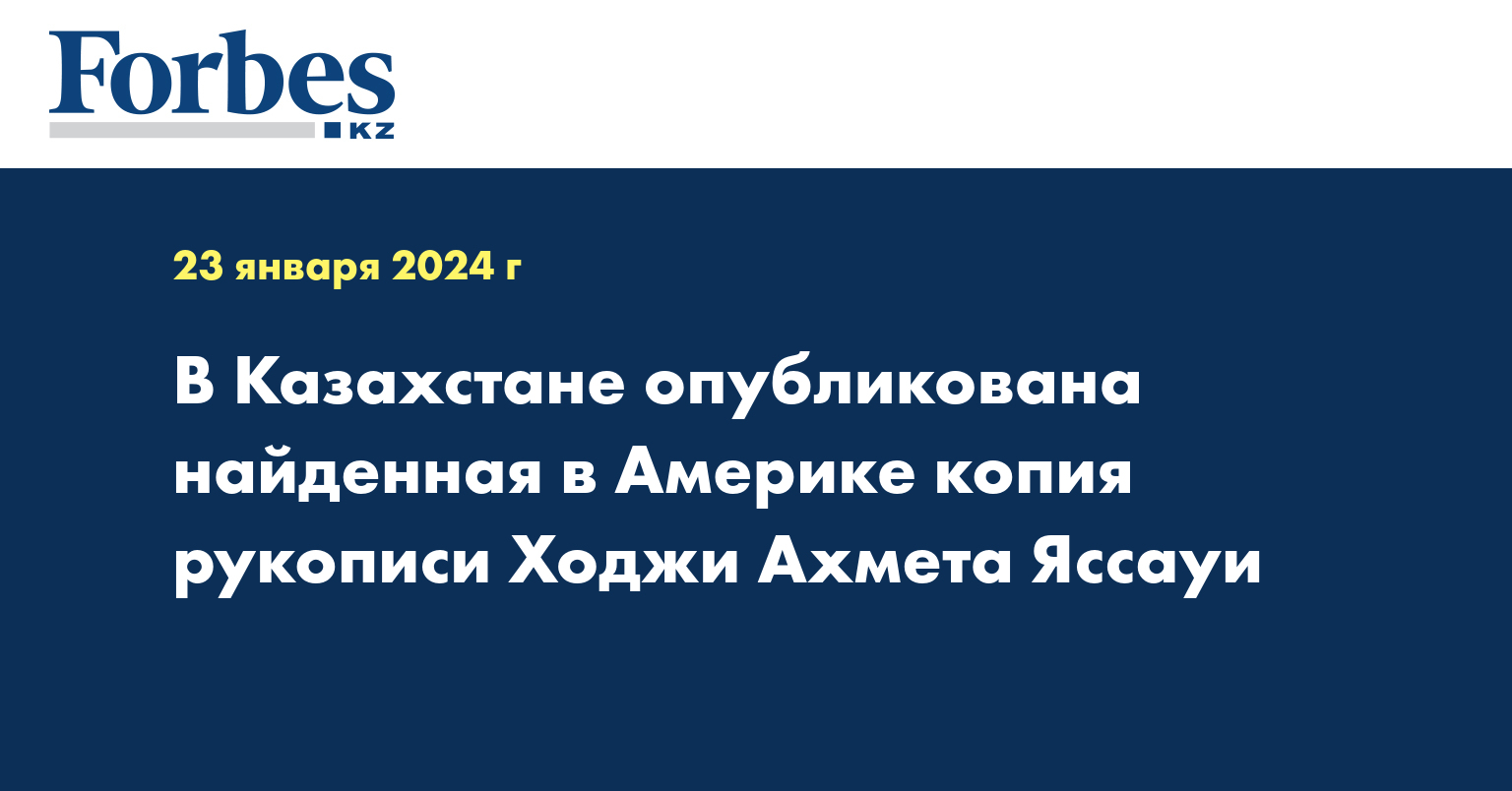 Специалисты Национального центра рукописей и редких книг опубликовали копию произведения великого мыслителя, учёного Ходжи Ахмета Яссауи, найденную в Америке.