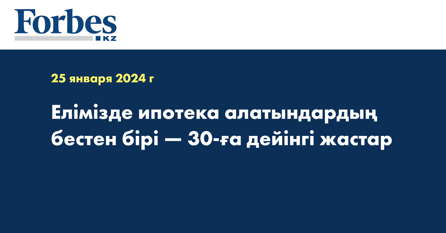 Бір жыл ішінде ипотека алғандардың шамамен бестен бір бөлігі — жастар. Қарыз алушылардың ішінде 30 жасқа дейінгі жастардың үлесі бір жылда 20%-ға жетті.