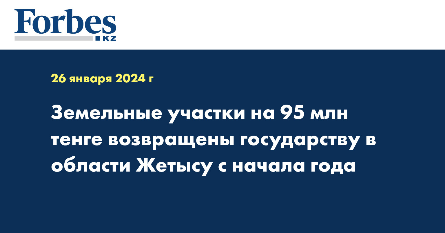 Прокурорами области Жетысу с начала года уже возвращено в государственный земельный фонд 30 земельных участков кадастровой стоимостью свыше 95 млн тенге, передает пресс-службу прокуратура региона.