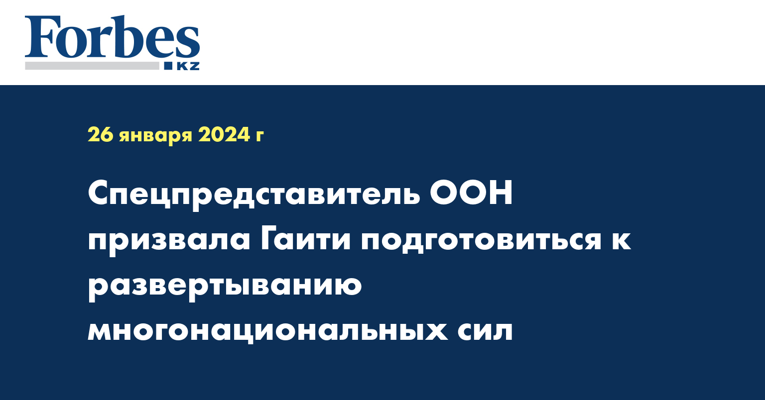 Специальный представитель генерального секретаря ООН по Гаити Мария Исабель Сальвадор в четверг призвала все заинтересованные стороны в стране подготовиться к развертыванию санкционированных ООН многонациональных полицейских сил под руководством Кении, передает "Синьхуа".