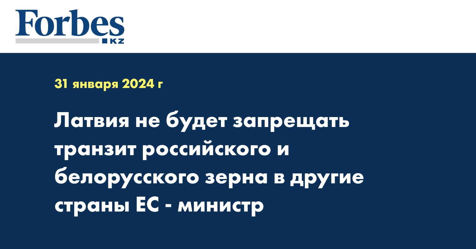 Латвия не будет запрещать транзит российского и белорусского зерна в другие страны Европейского союза, заявил во вторник министр земледелия Латвии Арманд Краузе на пресс-конференции после заседания правительства, передает Синьхуа.