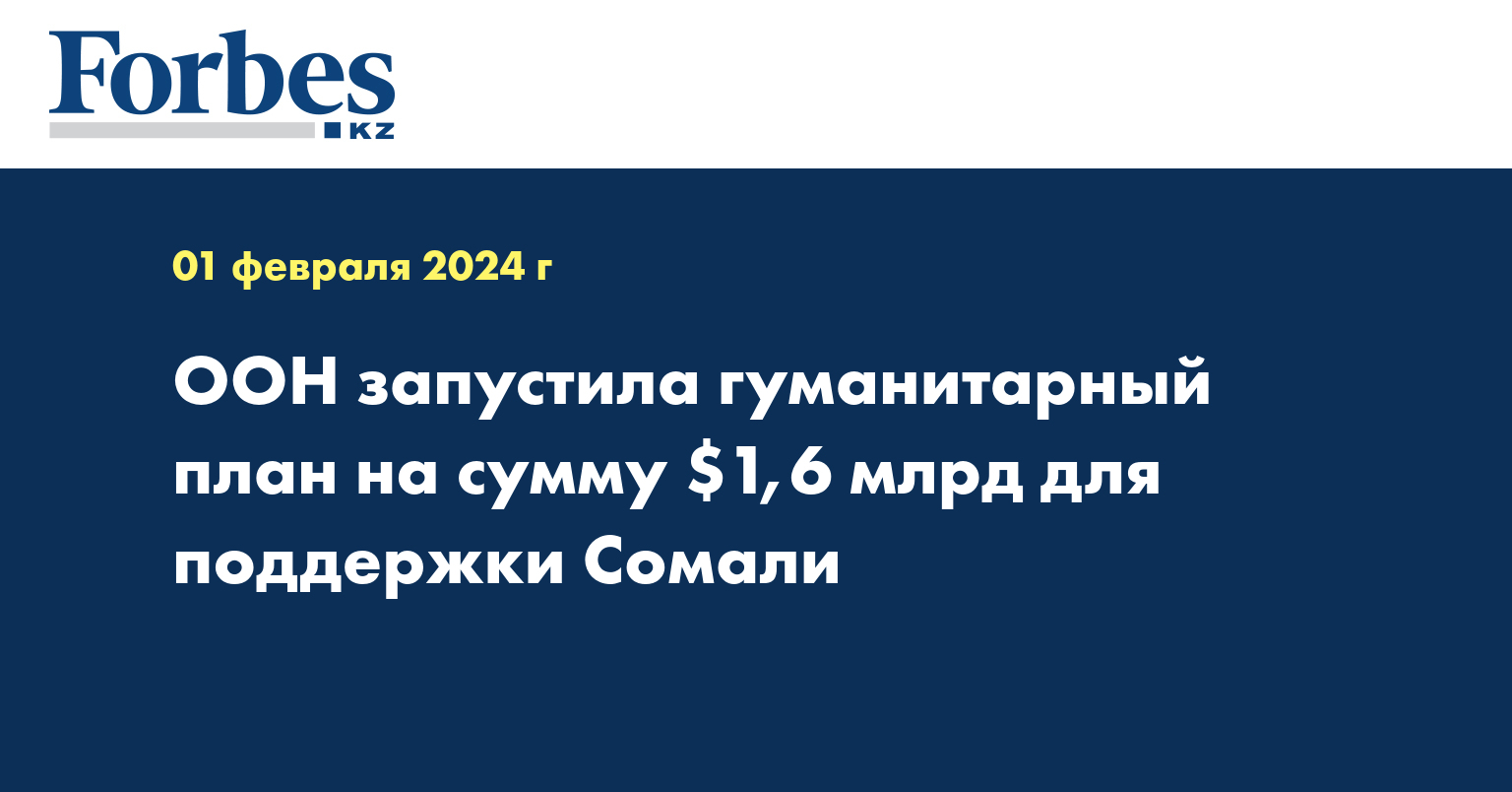 ООН запустила План гуманитарного реагирования на 2024 год, предусматривающий выделение 1,6 млрд долларов США для оказания помощи 5,2 млн нуждающимся сомалийцам. Об этом сообщил во вторник официальный представитель генерального секретаря ООН Стефан Дюжаррик на регулярном брифинге, передает Синьхуа.