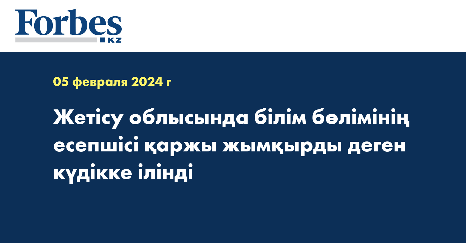 Мәселен, Жетісу облысы Кербұлақ ауданының білім бөлімінің есепшісі мұғалімдерге жалақы мен демалыс ақысын жоғарылатып заңсыз төлеп, сондай-ақ мүлдем жұмыс істемейтін адамдарға 34 миллион теңге жалақы төлеп, бюджет қаражатын жымқырды деген күдікке ілінді.