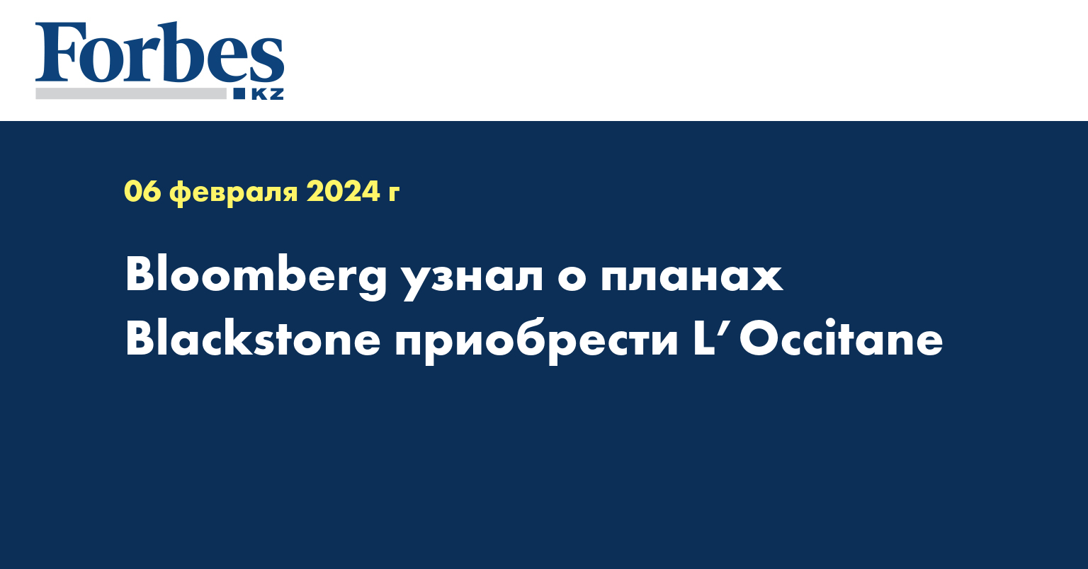 Blackstone изучает возможность подать заявку на приобретение L’Occitane, утверждают собеседники агентства. Также инвесткомпания рассматривает вариант выкупить L’Occitane совместно с председателем совета директоров производителя косметики Рейнольдом Гейгером (состояние $2,4 млрд по рейтингу Forbes Real-Time), сообщают собеседники Bloomberg. Он контролирует компанию, которой принадлежит более 70% L’Occitane International, передает Forbes.