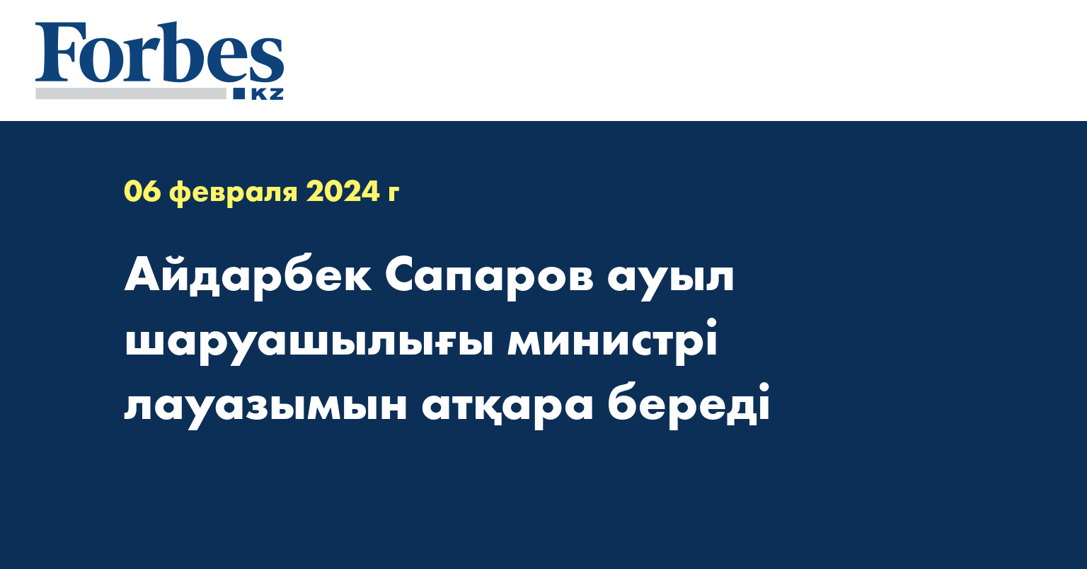 «Мемлекет басшысының Жарлығымен Айдарбек Сейпілұлы Сапаров Қазақстан Республикасының ауыл шаруашылығы министрі лауазымына тағайындалды», - деп жазылған Ақорданың ресми сайтында.