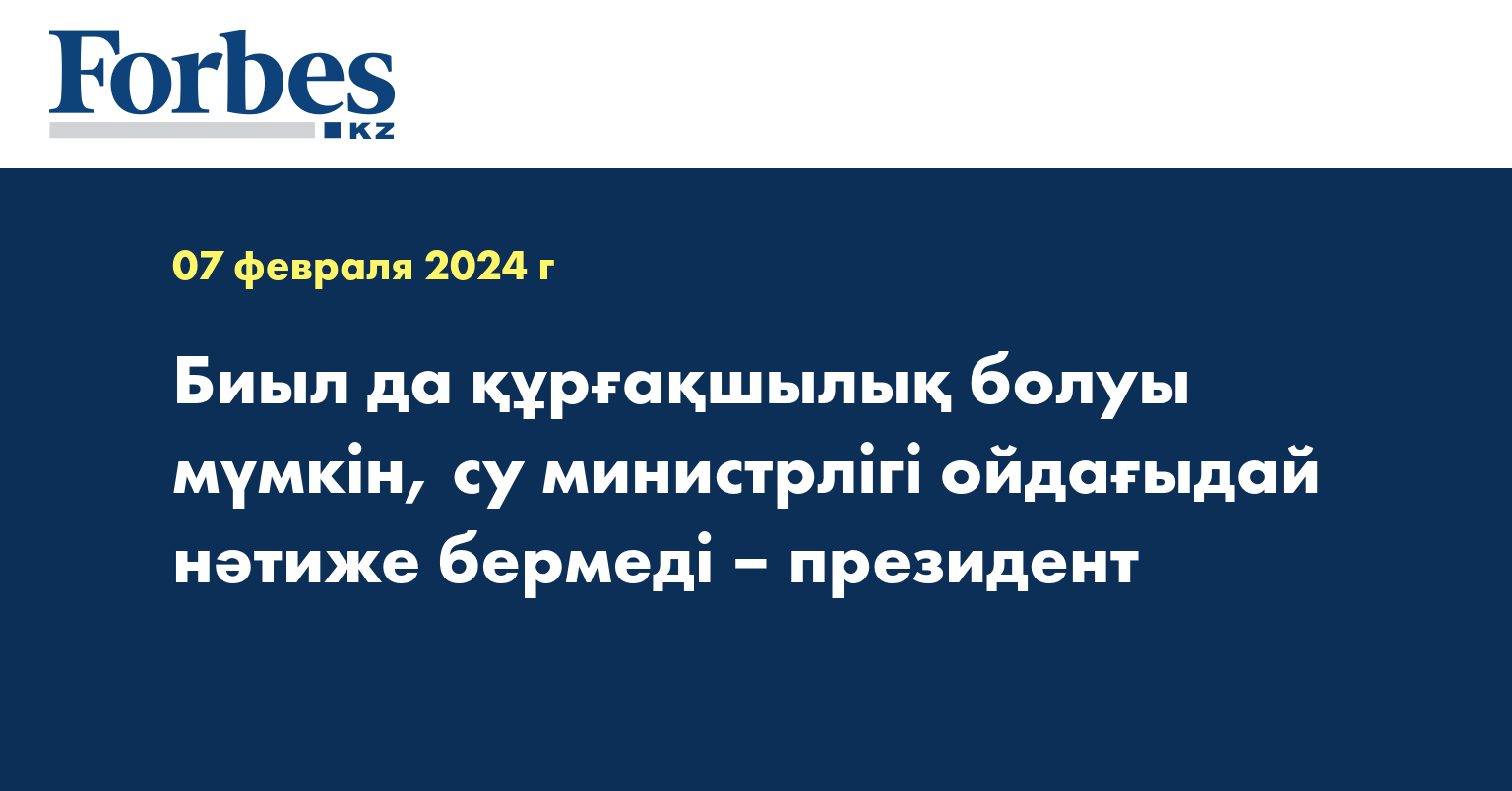 «Мысалы, еліміздегі суармалы жердің 13 пайызында ғана су үнемдеу технологиясы бар. Әсіресе, Түркістан және Қызылорда облыстарындағы жағдай мүшкіл, құрғақшылық қаупі аса жоғары. Соған қарамастан, осы аймақтарда тиісті жұмыс жүргізіліп жатқан жоқ. Сондықтан, суды көп қажет ететін дақылдарды азайтып, құрғақшылыққа төзімді дақылдарды көбейту керек, су үнемдейтін технологияны енгізу қажет. Ахуалды жақсарту үшін батыл әрекет жасау керек», - деді Тоқаев.
