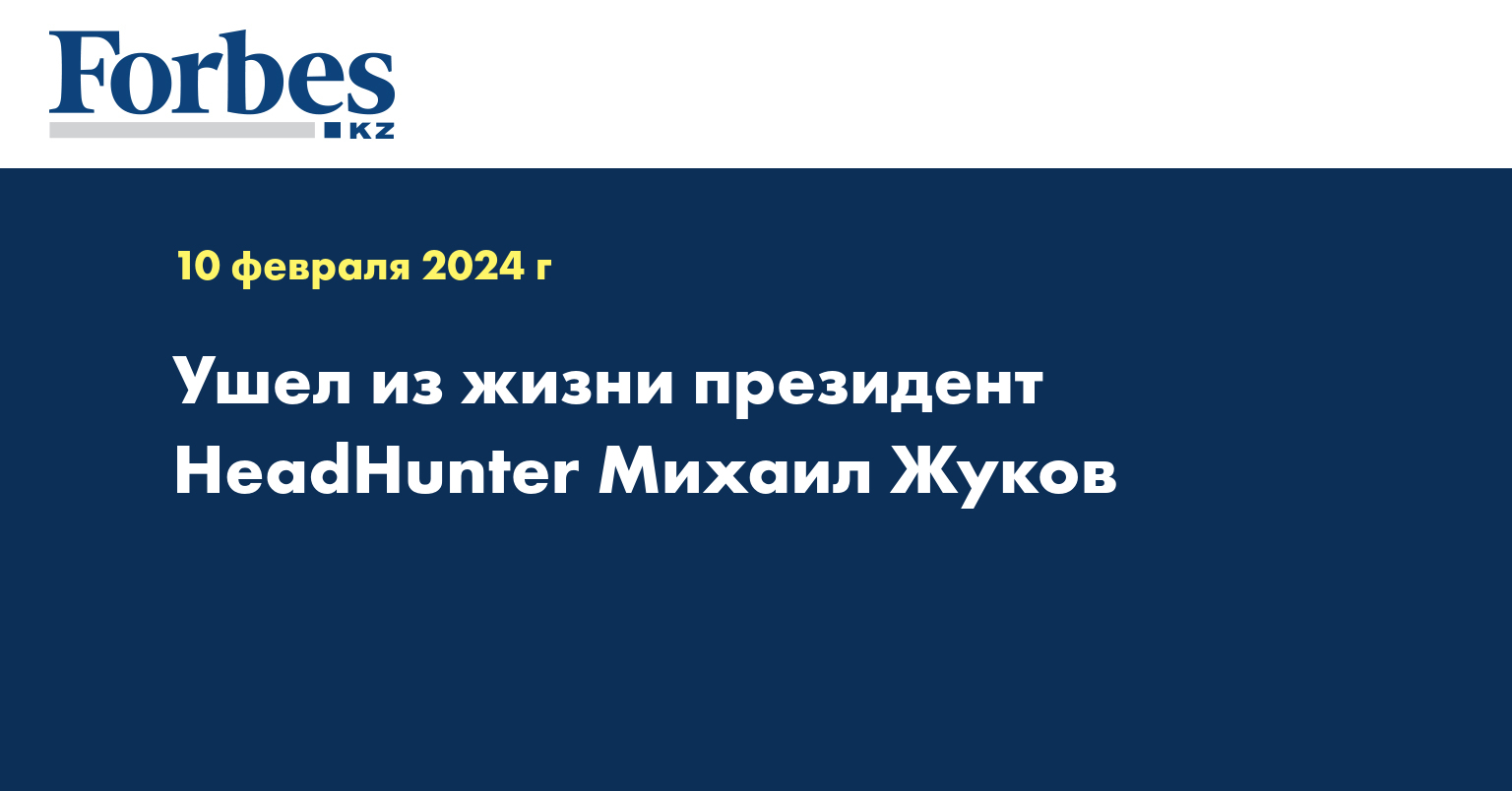 Умер президент HeadHunter Михаил Жуков в возрасте 56 лет, сообщила Forbes пресс-служба компании. Он занимал должность президента компании с марта 2023 года. Ранее, с 2008 по 2022 год, Жуков был генеральным директором HeadHunter. «Для HeadHunter и наших сотрудников уход Михаила невосполнимая безвременная утрата, приносим соболезнования всем родным и близким», — говорится в сообщении.