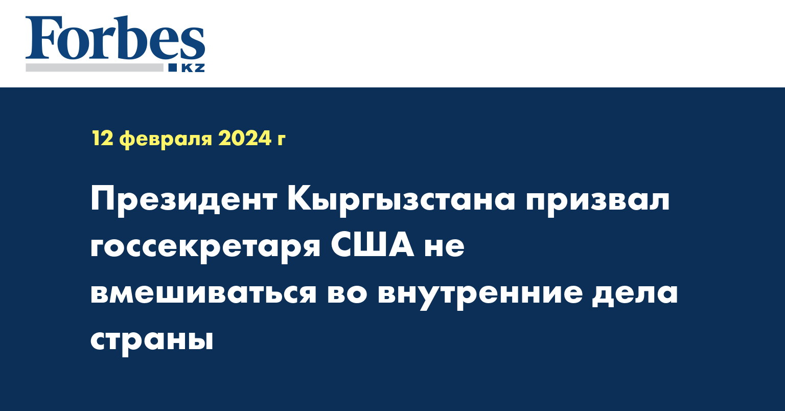 Президент Кыргызстана Садыр Жапаров призвал государственного секретаря США Энтони Блинкена не вмешиваться во внутренние дела страны. Об этом говорится в ответном письме С. Жапарова Э. Блинкену, которое в понедельник опубликовал пресс-секретарь президента Кыргызстана Аскат Алагозов, передает «Синьхуа».